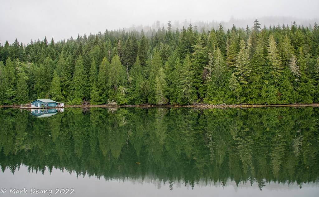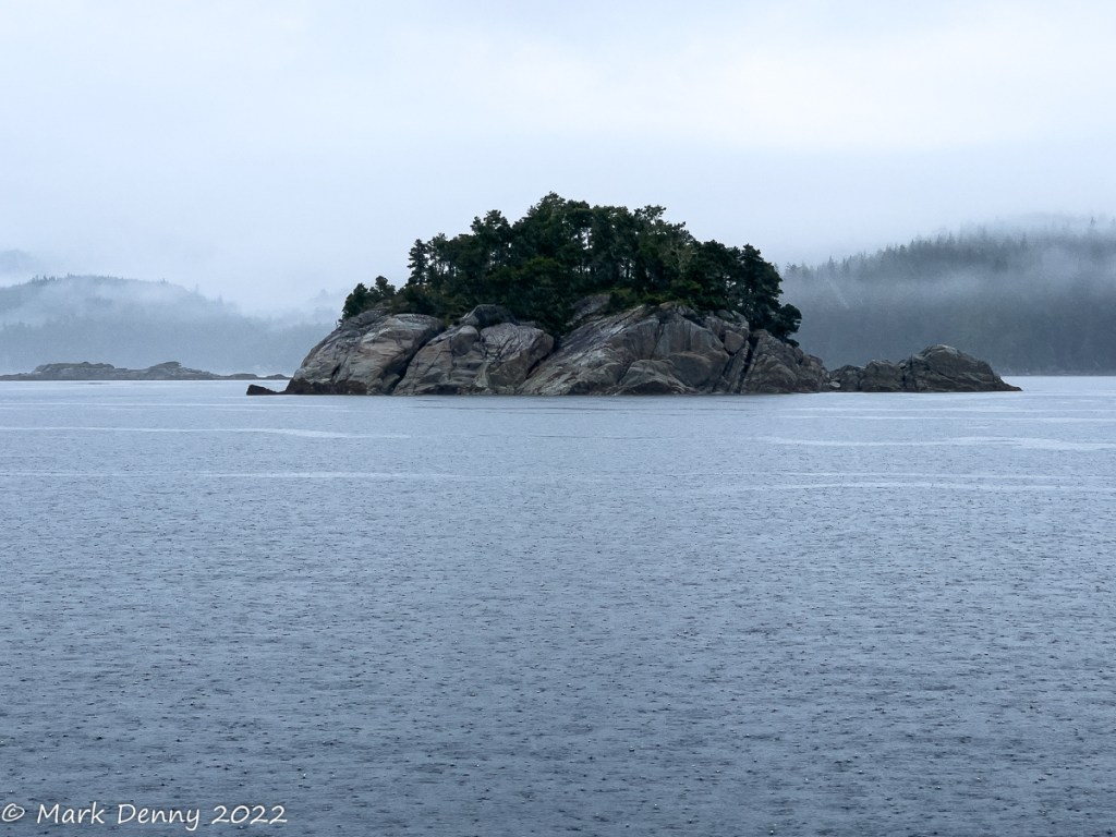 Our last day in Lagoon Cove was a wet one so we decided it was time to head south for better weather. Our route took us through Chatham Channel which on the chart looks shallow and narrow. Turned out to be an easy passage. The narrow portion is well marked with two ranges so staying in the channel was not a problem. In Johnstone Strait we had to deal with an adverse current of 1.5 – 2.5 kts. but fortunately, the wind was light, so the seas were calm.
